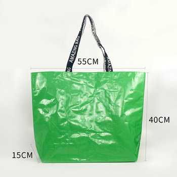 Promosyon yeni tasarım büyük kapasiteli dayanıklı lamine PE pp dokuma alışveriş çantası